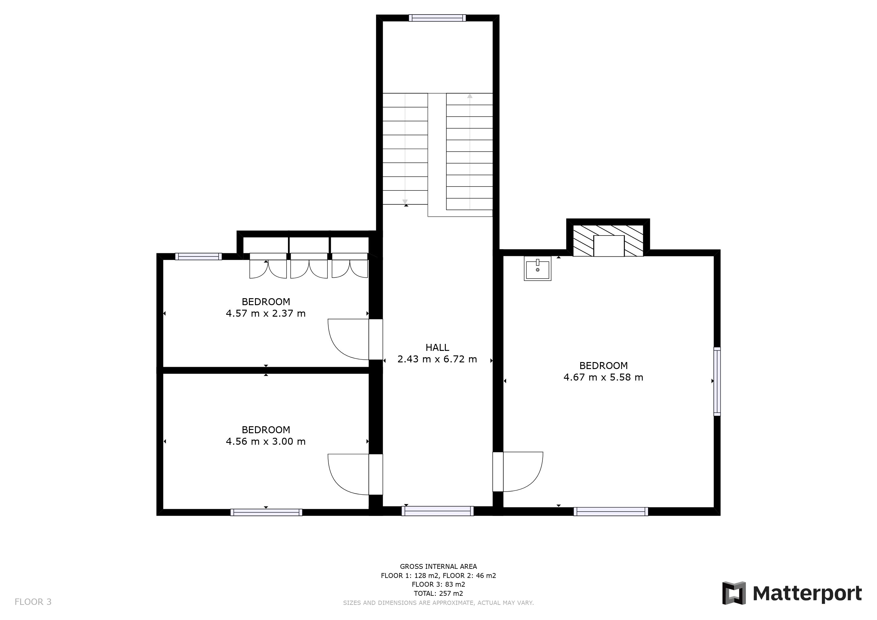 Bedroom 3 c.4.6m x c.2.9m (c.15'1" x c.9'6")